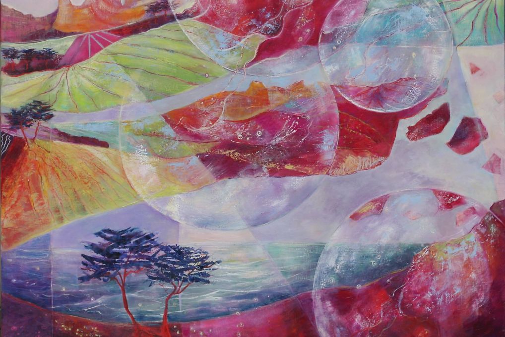 L'exposition d'Emmanuelle Brett est une invitation à entrer dans un monde imaginaire, un rêve éveillé, loin des réalités parfois moroses du monde qui nous entoure. Un cheminement dans des paysages aux harmonies colorées, où les villes se parent de formes tout en rondeurs et les champs de couleurs chatoyantes. Un monde onirique et féérique qui réinvente une réalité rêvée au gré de compositions joyeuses et rythmées. Ce sens de la composition est une des marques de la peinture d'Emmanuelle Brett. Comme dans une partition musicale, elle pense dominantes, rythmes, silences, vides et pleins, avant d'apposer ces lignes et courbures qui donnent mouvement et vie à ses paysages.La couleur composée, d'infinies nuances, vient enrichir le sujet, lui donner ses contrastes et parfaire l'harmonie du tableau.
