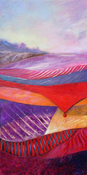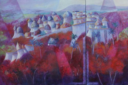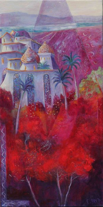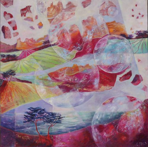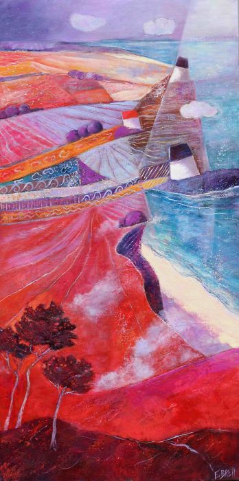 L'exposition d'Emmanuelle Brett est une invitation à entrer dans un monde imaginaire, un rêve éveillé, loin des réalités parfois moroses du monde qui nous entoure. Un cheminement dans des paysages aux harmonies colorées, où les villes se parent de formes tout en rondeurs et les champs de couleurs chatoyantes. Un monde onirique et féérique qui réinvente une réalité rêvée au gré de compositions joyeuses et rythmées. Ce sens de la composition est une des marques de la peinture d'Emmanuelle Brett. Comme dans une partition musicale, elle pense dominantes, rythmes, silences, vides et pleins, avant d'apposer ces lignes et courbures qui donnent mouvement et vie à ses paysages.La couleur composée, d'infinies nuances, vient enrichir le sujet, lui donner ses contrastes et parfaire l'harmonie du tableau.
